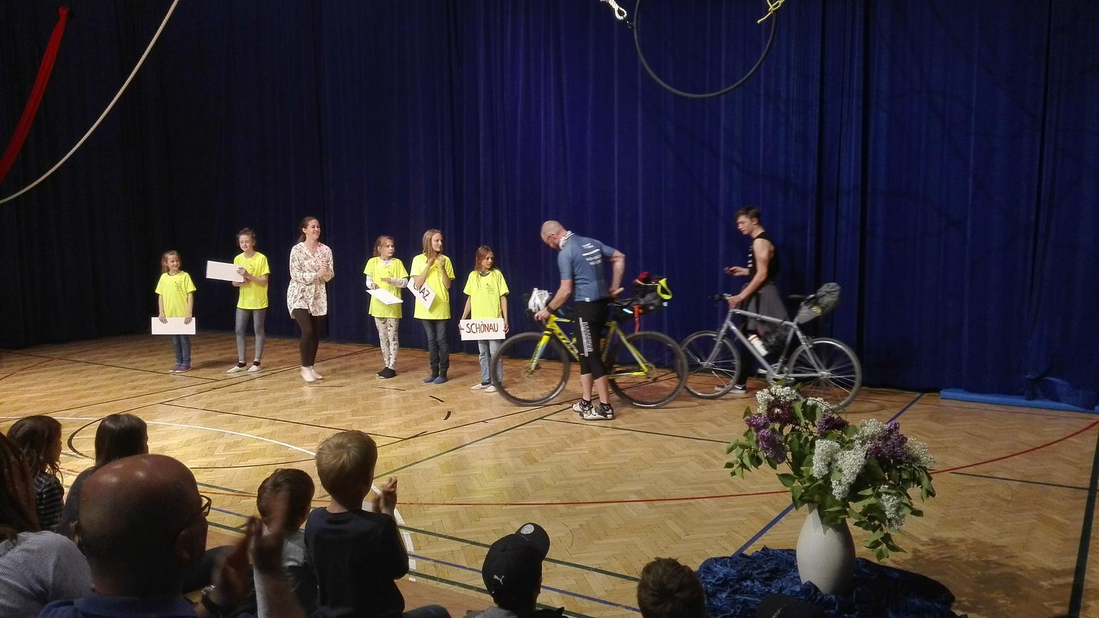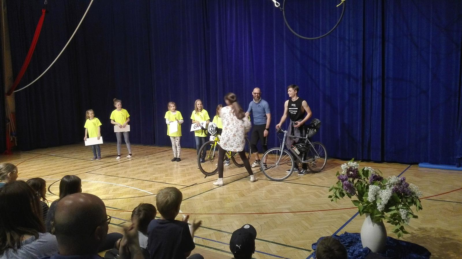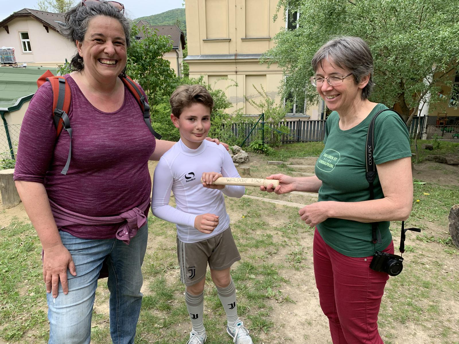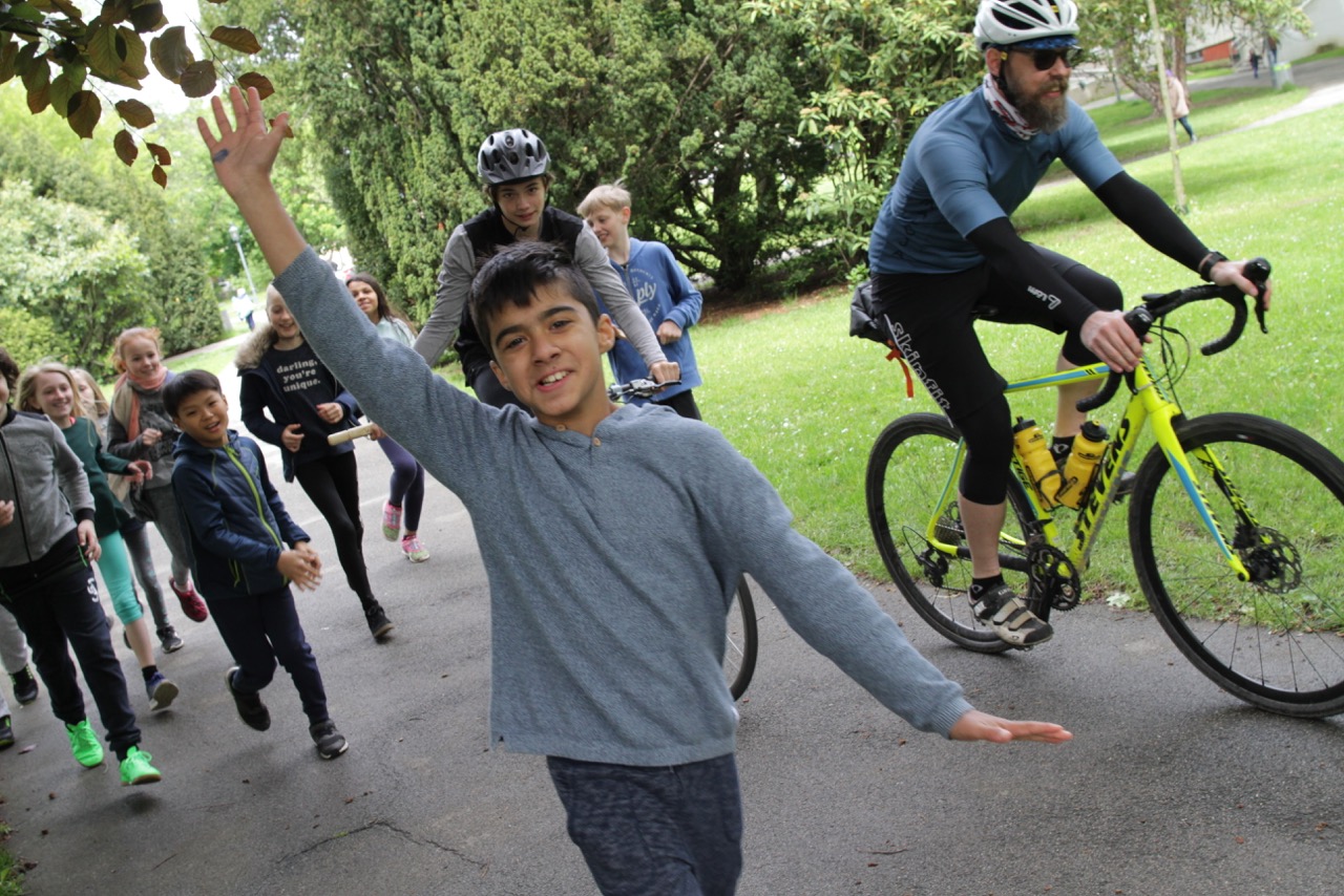 Der Sportlehrer der 8. Kasse, Matthias Stadler, hat sich, nachdem wir das Staffelholz am 9.5.2019 bekommen haben, am Freitag, den 10.5.2019, mit fünf Schülern der 8. Klasse auf den langen Weg nach Schönau gemacht. Das Wetter war an diesem Tag weitaus trockener, es musste allerdings gegen den unglaublich starken Gegenwind geradelt werden. Trotz einigen Verirrungen und den unterschiedlichen Geschwindigkeiten der Radfahrer wurde es ein sehr schöner Tagesausflug und führte die Radler an der schönen Triesting entlang zur Rudolf Steiner Landschule Schönau. Dort wurde das Staffelholz feierlich übergeben und anschließend wurden die weitgereisten Schüler zu einem stärkenden Essen eingeladen.