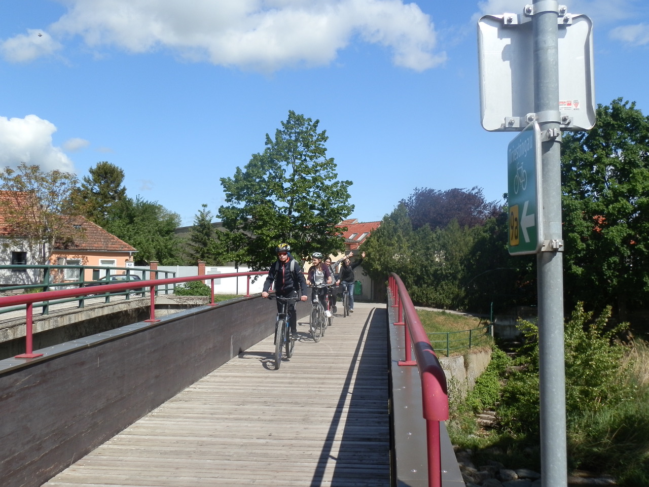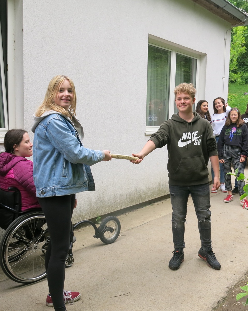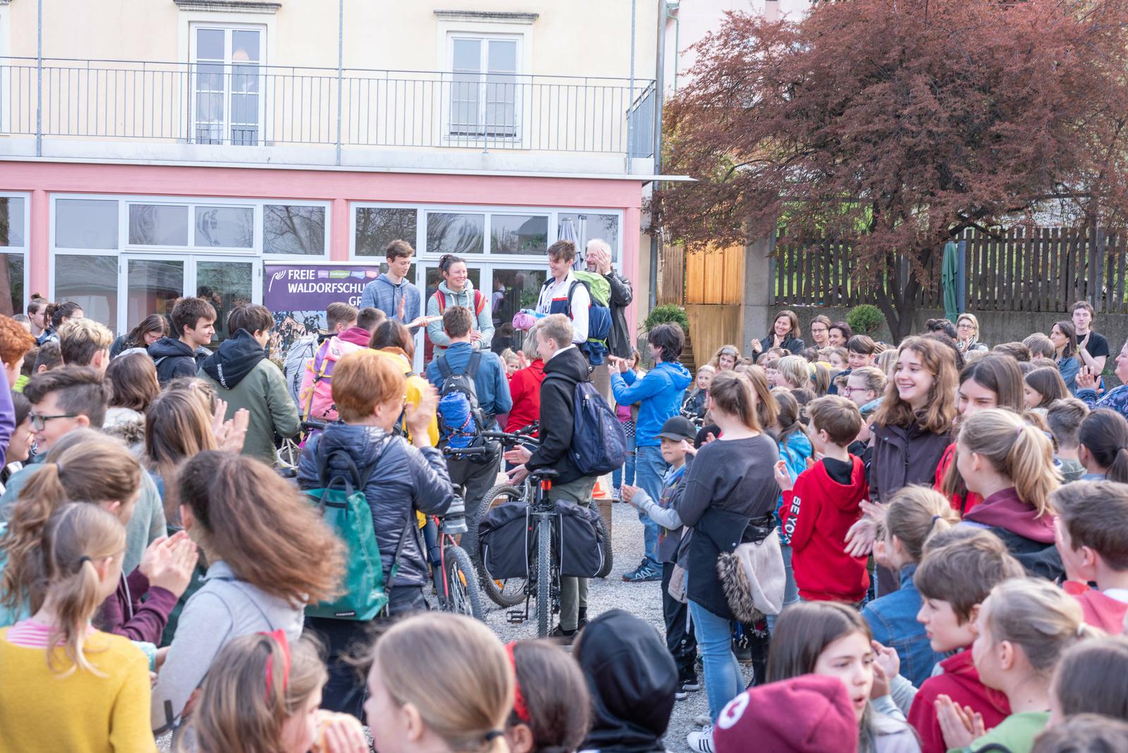 Der Sportlehrer der 8. Kasse, Matthias Stadler, hat sich, nachdem wir das Staffelholz am 9.5.2019 bekommen haben, am Freitag, den 10.5.2019, mit fünf Schülern der 8. Klasse auf den langen Weg nach Schönau gemacht. Das Wetter war an diesem Tag weitaus trockener, es musste allerdings gegen den unglaublich starken Gegenwind geradelt werden. Trotz einigen Verirrungen und den unterschiedlichen Geschwindigkeiten der Radfahrer wurde es ein sehr schöner Tagesausflug und führte die Radler an der schönen Triesting entlang zur Rudolf Steiner Landschule Schönau. Dort wurde das Staffelholz feierlich übergeben und anschließend wurden die weitgereisten Schüler zu einem stärkenden Essen eingeladen.