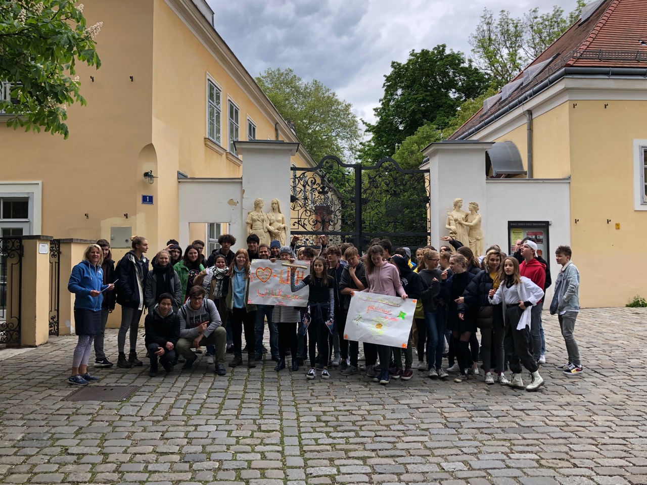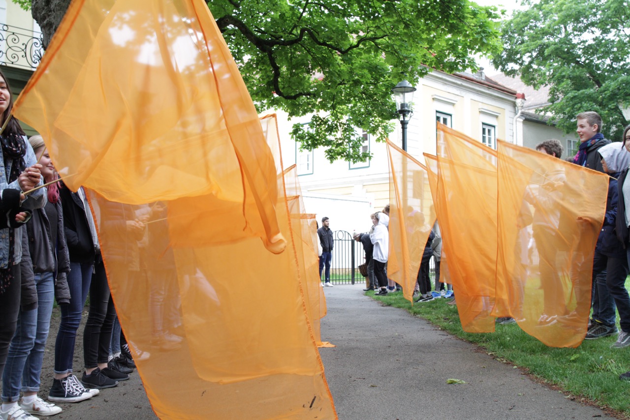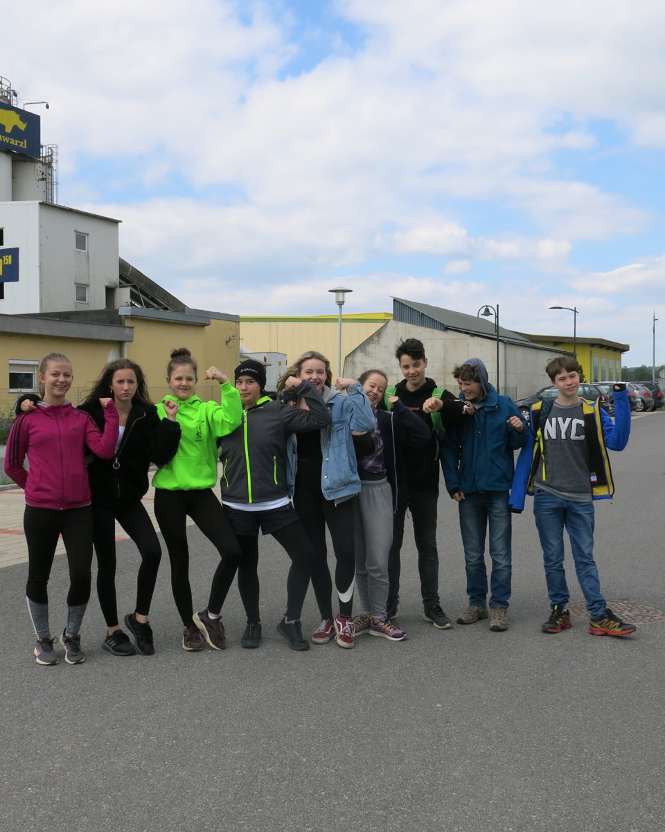 Am Dienstag, dem 7. Mai war es so weit! Die Staffel kam von der Grazer Karl-Schubert-Schule zu uns nach Eisenstadt. Erwartet wurden 15 SchülerInnen der 8. Klasse und 5 Betreuer. Die Grazer liefen zuerst ca. 1,5 h Richtung Burgenland und fuhren dann mit Autos weiter, das letzte Stück zu unserer Schule wurde wieder gelaufen. Natürlich wollte unsere 8. Klasse die Staffel in Empfang nehmen. Die Aufregung war groß! Wir richteten ein kleines Buffet mit Kuchen und Getränken, an dem sich unsere Gäste nach den Anstrengungen laben konnten vor ihrer Heimreise. Davor gab es noch eine kleine Schulführung und natürlich jede Menge Fotos.