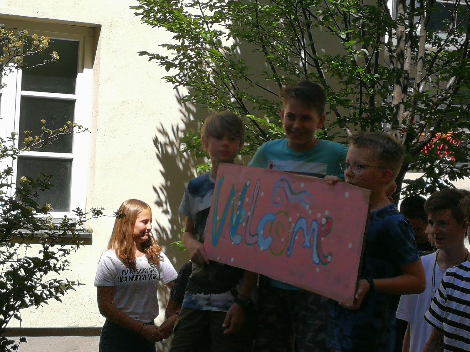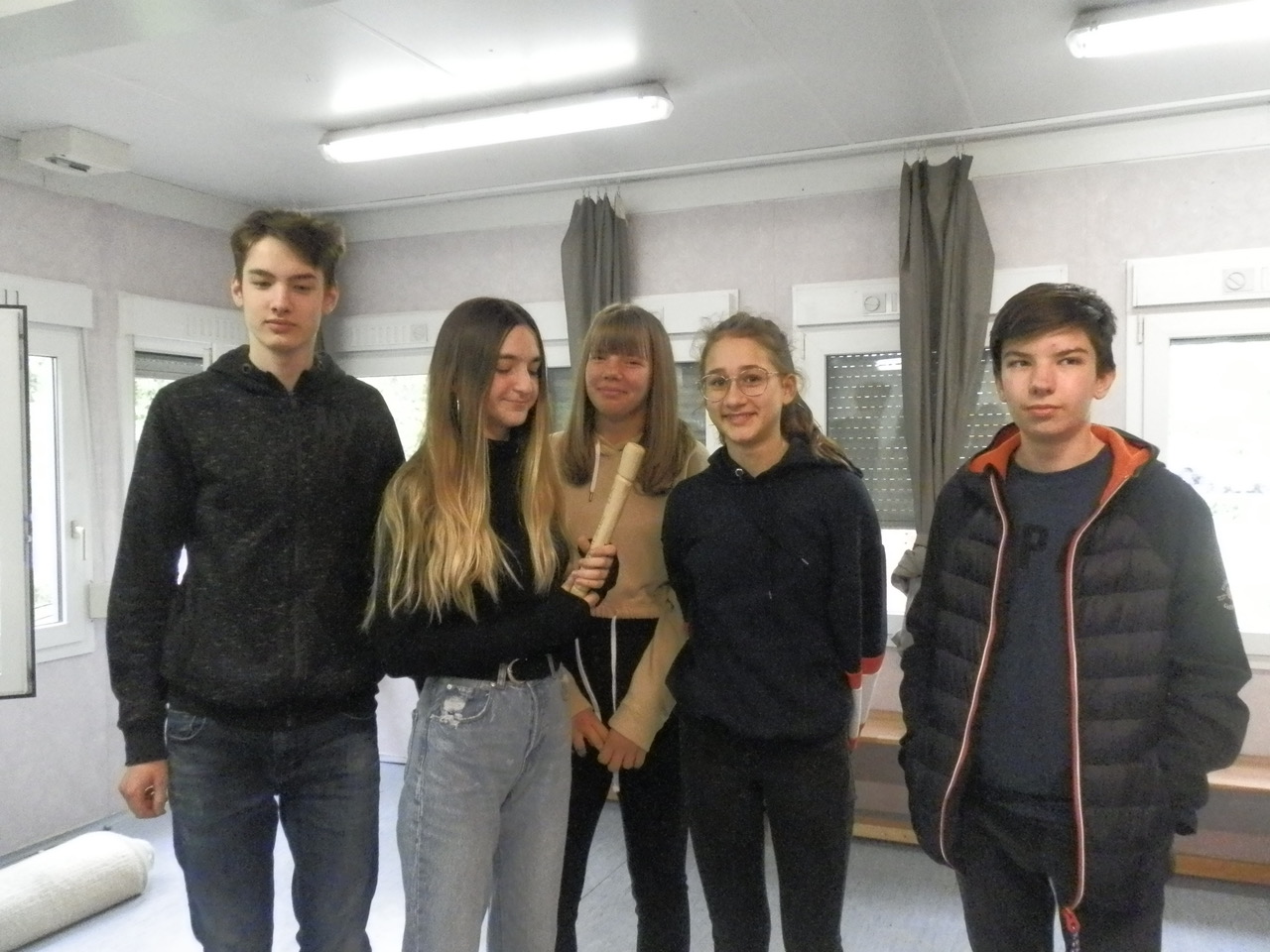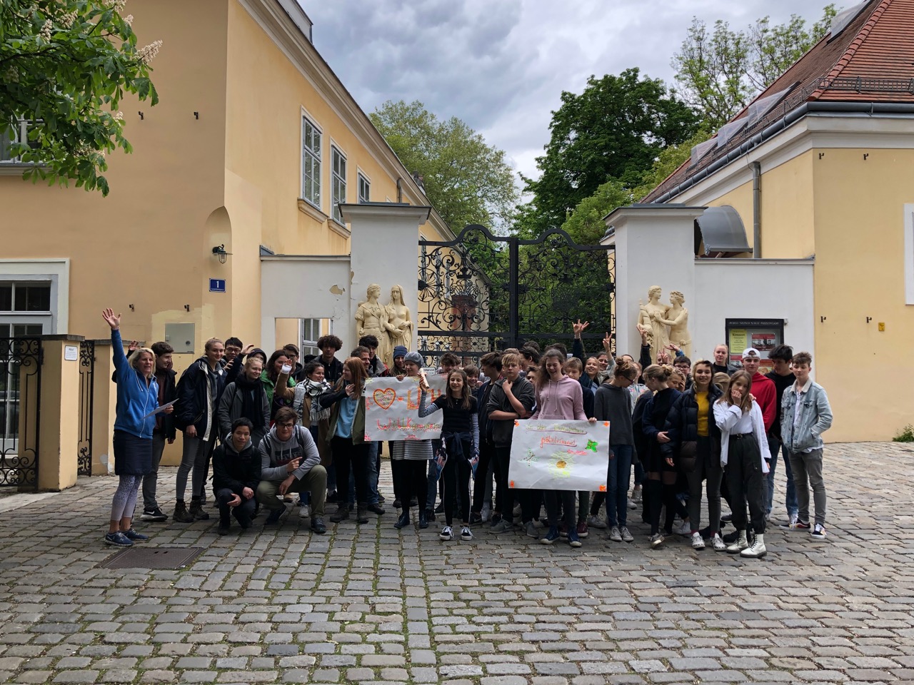 Am Dienstag, dem 7. Mai war es so weit! Die Staffel kam von der Grazer Karl-Schubert-Schule zu uns nach Eisenstadt. Erwartet wurden 15 SchülerInnen der 8. Klasse und 5 Betreuer. Die Grazer liefen zuerst ca. 1,5 h Richtung Burgenland und fuhren dann mit Autos weiter, das letzte Stück zu unserer Schule wurde wieder gelaufen. Natürlich wollte unsere 8. Klasse die Staffel in Empfang nehmen. Die Aufregung war groß! Wir richteten ein kleines Buffet mit Kuchen und Getränken, an dem sich unsere Gäste nach den Anstrengungen laben konnten vor ihrer Heimreise. Davor gab es noch eine kleine Schulführung und natürlich jede Menge Fotos.