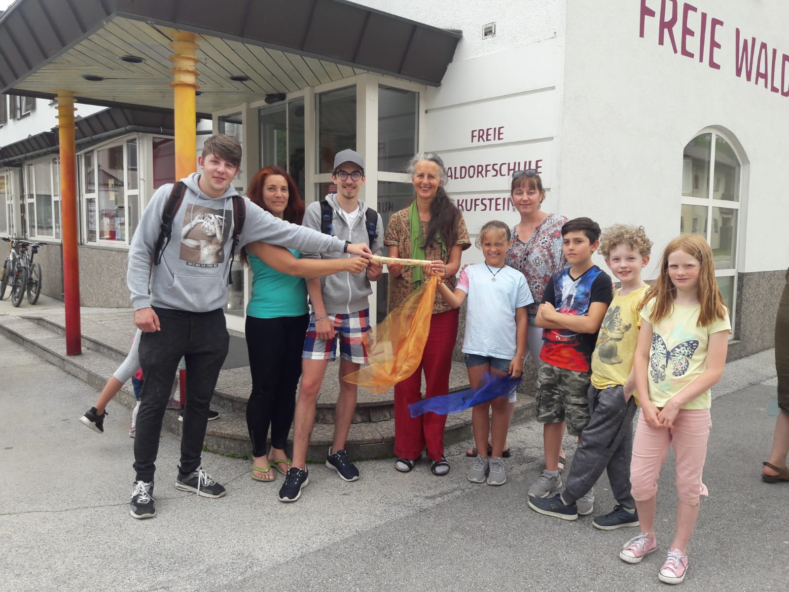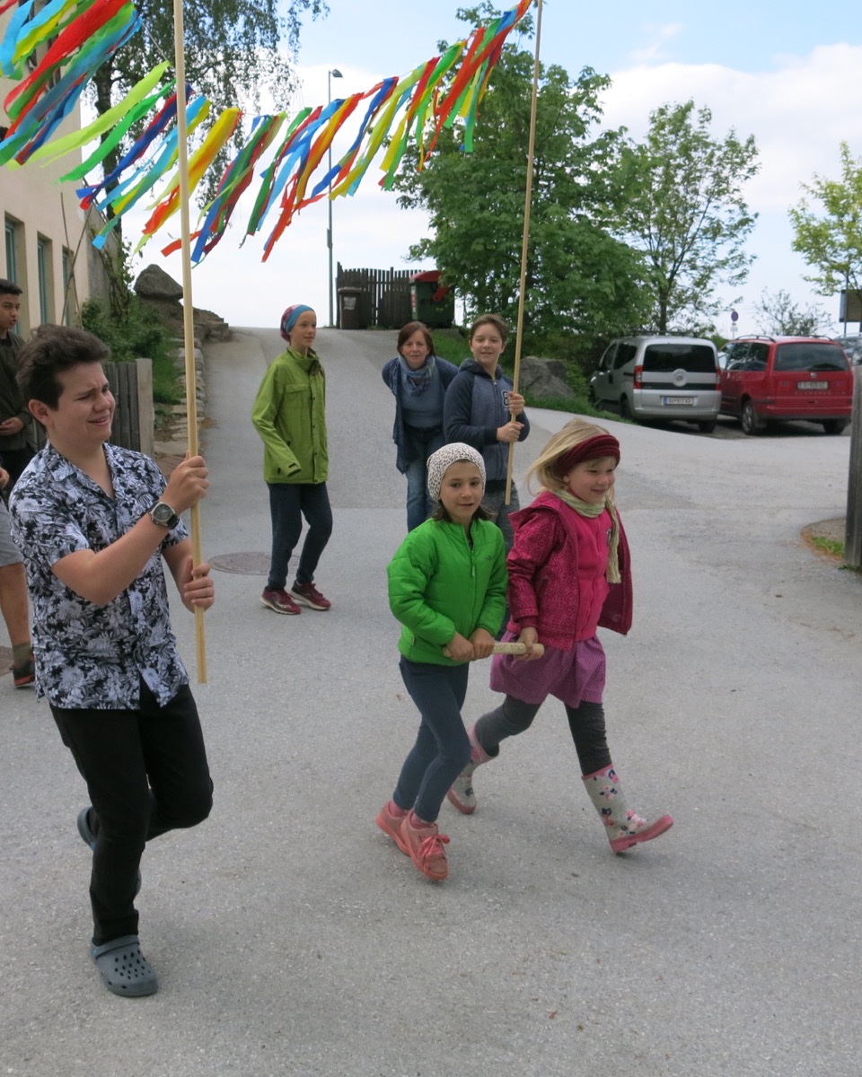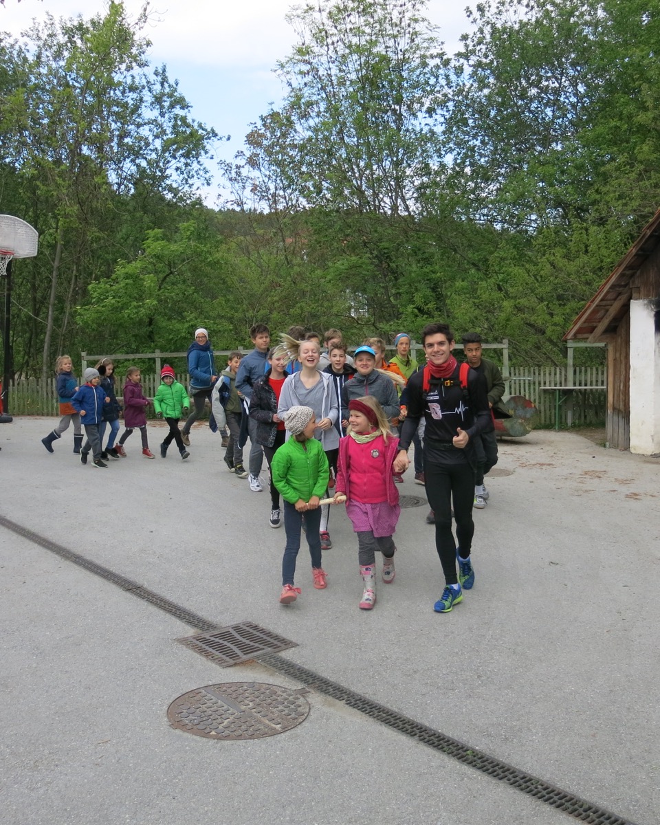 Die kleine Gruppe der 6. Klasse ist gut und heil, erschöpft aber sehr stolz, bei der ersten Etappe der Waldorf 100 Staffel-Tour in Übersee am 6.06. angekommen. Wir waren 2 Tage unterwegs und wurden fantastisch und großherzig von Nikans Eltern am Waginger See für eine Nacht beherbergt. Nun sind SchülerInnen unserer 11. Klasse unterwegs in Richtung Kufstein.